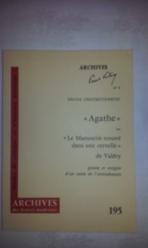 "Agathe", ou, "Le manuscrit trouvé dans une cervelle" de Valéry: Genèse et exégèse d'un conte de l'entendement documentation complète en ligne gratuitement. Lecture